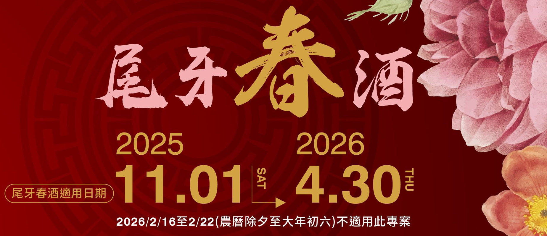 2025 年 02 月 16 日 農曆除夕 至 2026 年 02 月 22 日 大年初六 不適用此專案。